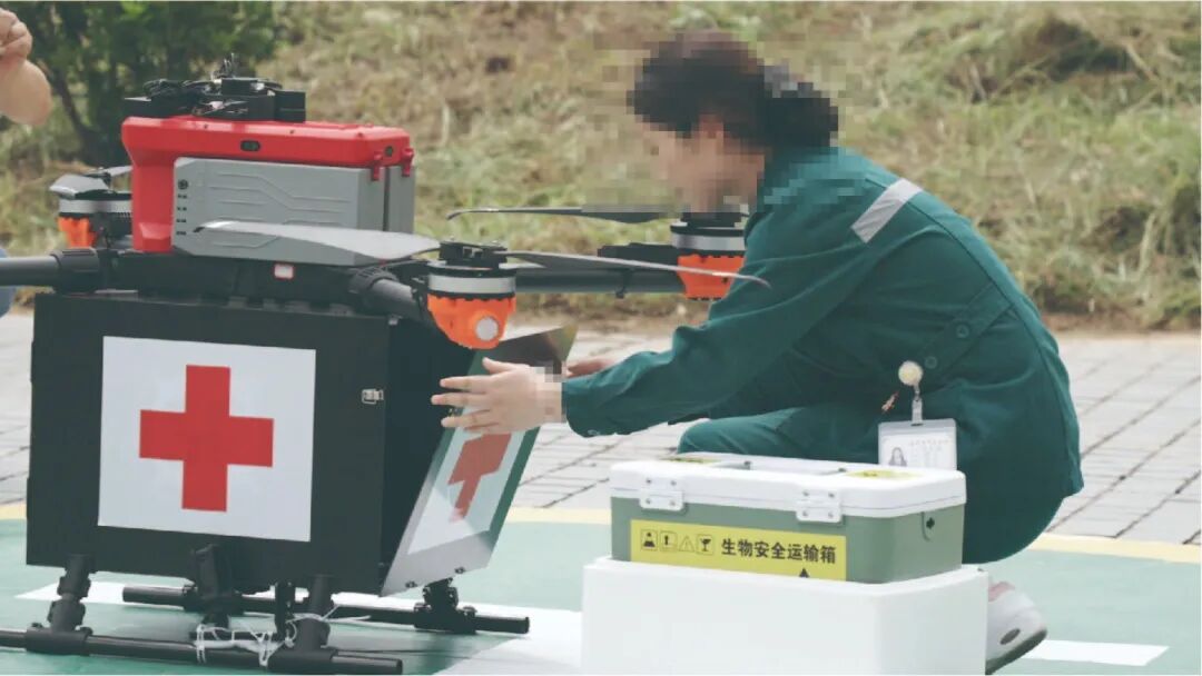 地面终端与流程: 在县医院及关键乡镇卫生院部署全自动物流柜。 U15 装载标准医疗恒温箱,自主飞行并精准降落入柜,实现全程无人化、无接触配送。医护人员凭码随时取用。